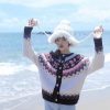Chunky Knit Cardigan, Oversized Floral Rose Sweater, Hand Knitted Cozy Wool Jumper, Custom Color Gift for Her, Aesthetic Fall Clothing