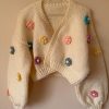 Hand knit oversize woman sweater chunky slouchy wool cable knit short cardigan